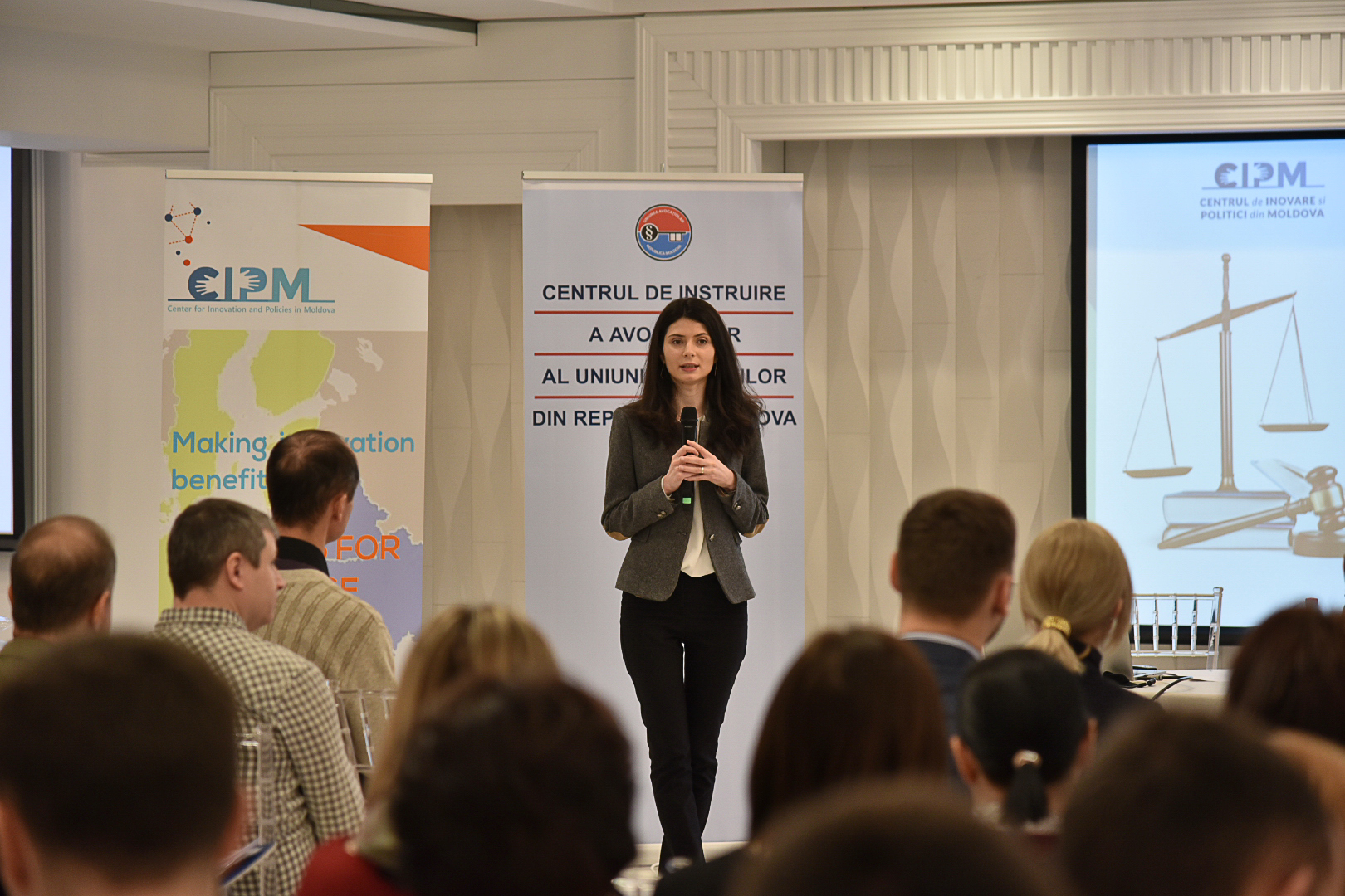 Despre rolul Rolul educației în asigurarea respectului pentru lege și stat de drept în Republica Moldova ne-a vorbit doamna Ecaterina Vâlcu din partea Ambasadei Olandei. Veronica Midari – expert național la Centrul de Inovare și Politici din Moldova ne-a prezentat rezultatele evaluării nivelului de importanță al educației juridice.