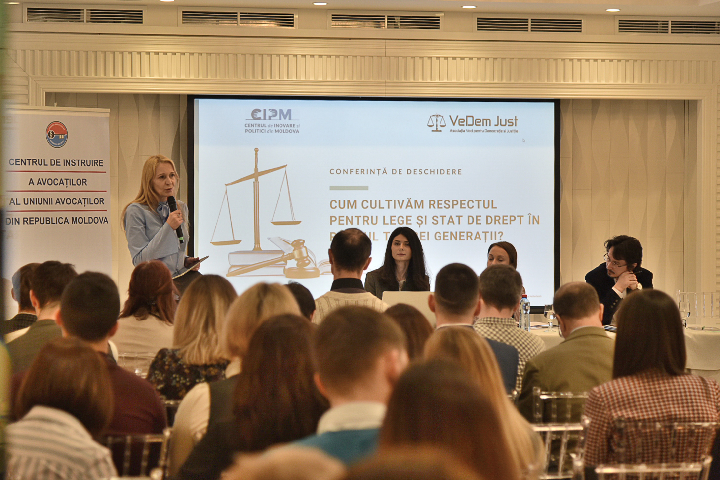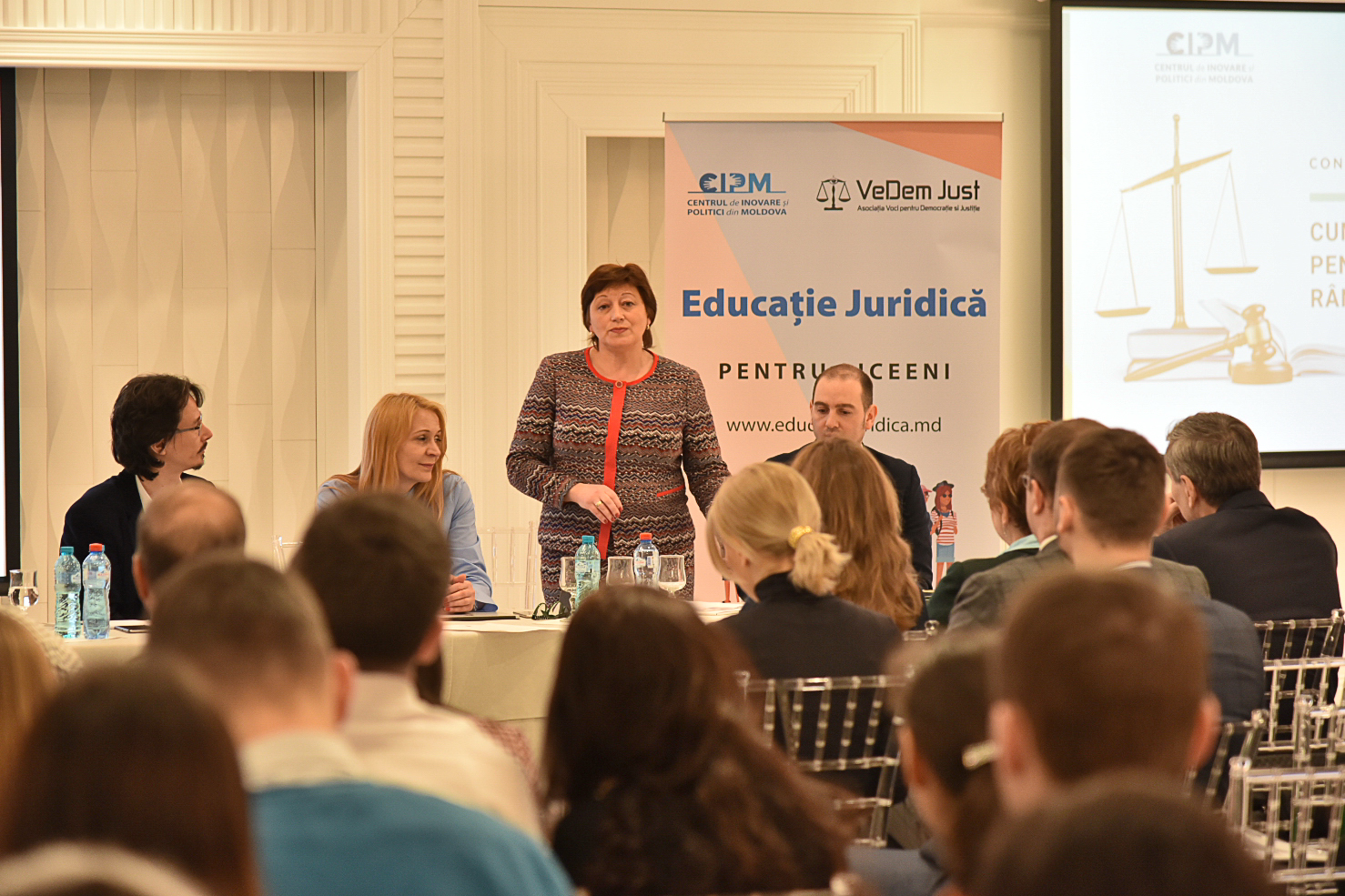 Conferința ce a avut loc sub egida Educație pentru Justiție și Democrație – “Cum cultivăm respectul pentru lege și stat de drept în rândul tinerei generații?” a beneficiat de o scurtă introducere a doamnei Ludmila Stuparu, moderator din partea Centrului de Inovare și Politici din Moldova precum și a doamnei Viorica Grecu, reprezentant al Uniunii Avocaților din Republica Moldova – Centru de instruire al avocaților.
