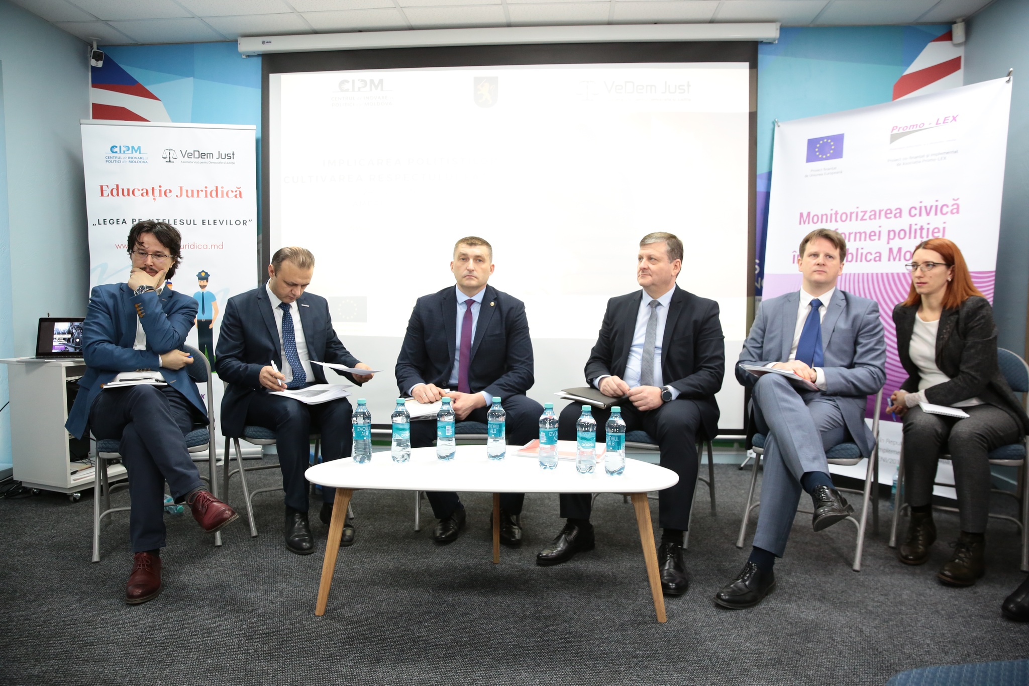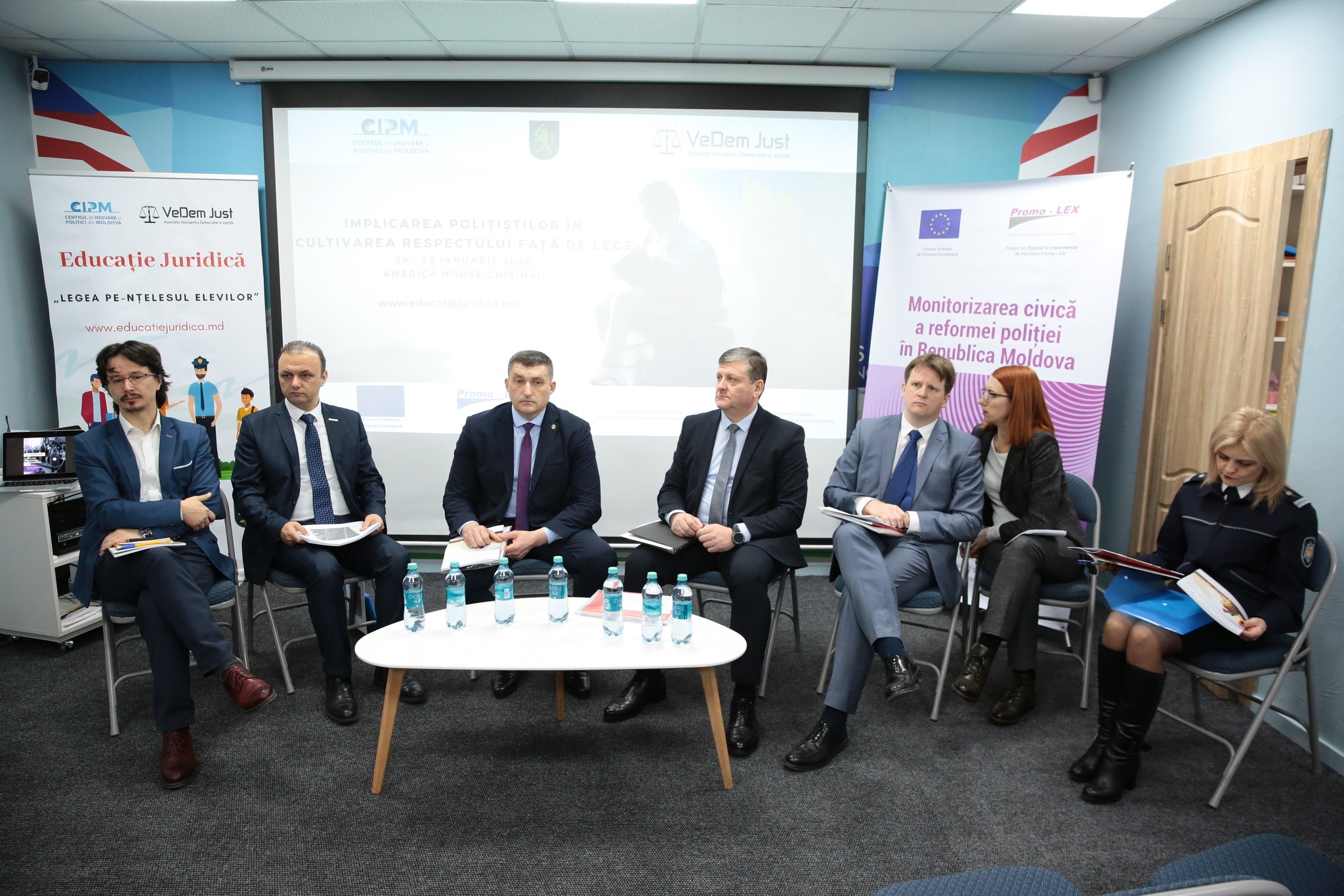 Within the conference, Steven Daniëls – representative of the EU Delegation to the Republic of Moldova, Corneliu Popovici – Minister of Education, Culture and Research, Cristi Dănileț – Judge and Initiator of the Legal Education Project, Ion Manole – Executive Director of Promo-LEX, Sergiu Golovaci – State Secretary of Ministry of Internal Affairs, Alina Ursu – representative of the General Police Inspectorate and Ion Pruteanu – representative of the National Anticorruption Center have welcomed 20 policemen in the National Network of Legal Education and encouraged them to spread the message among young people by equipping them with the appropriate legal knowledge, values, attitudes, and behaviors they need in order to contribute to the continued improvement and regeneration of the rule of law in the Moldovan society.