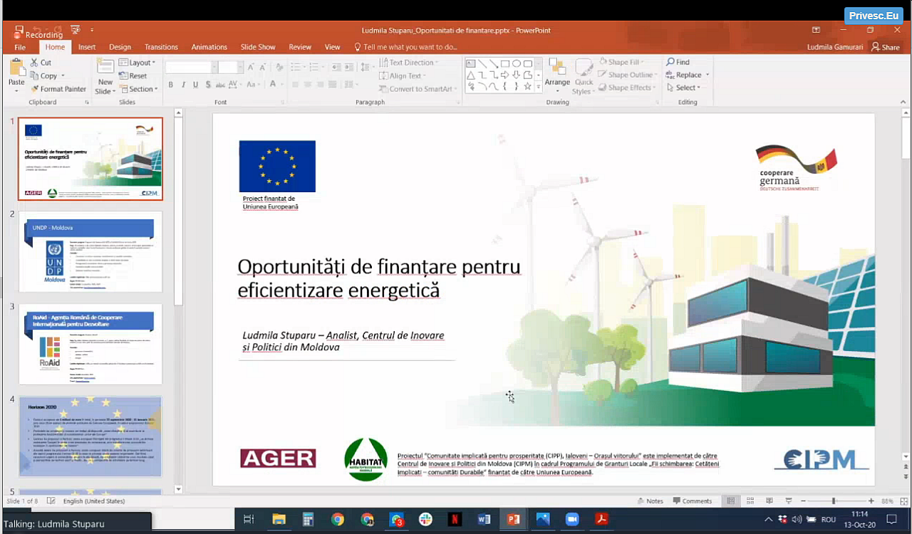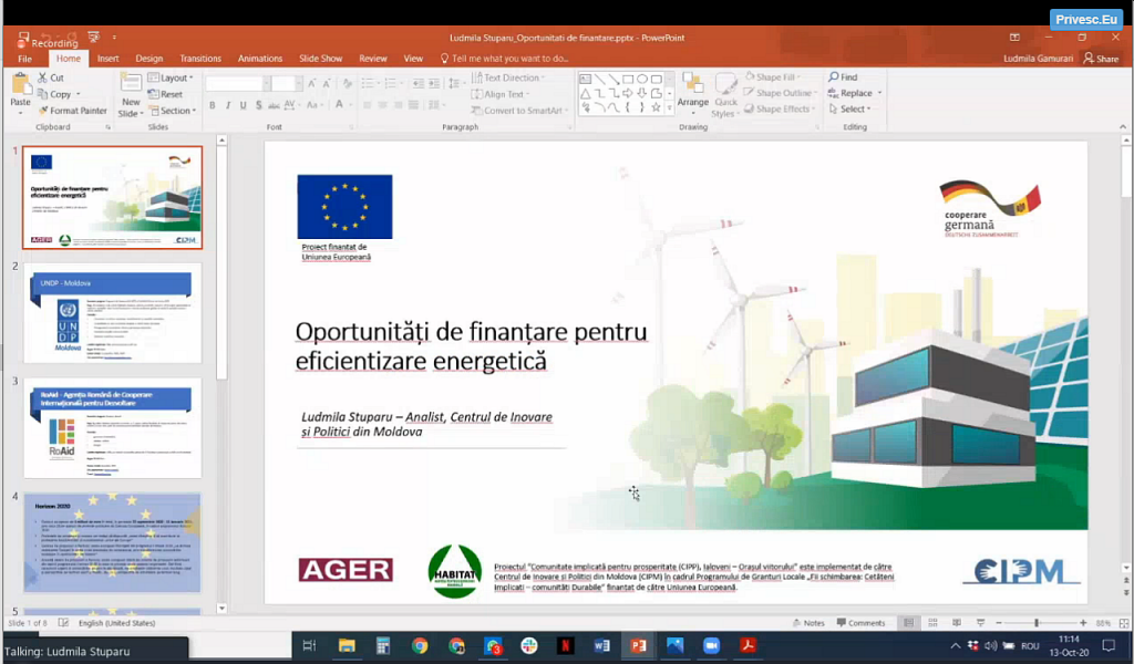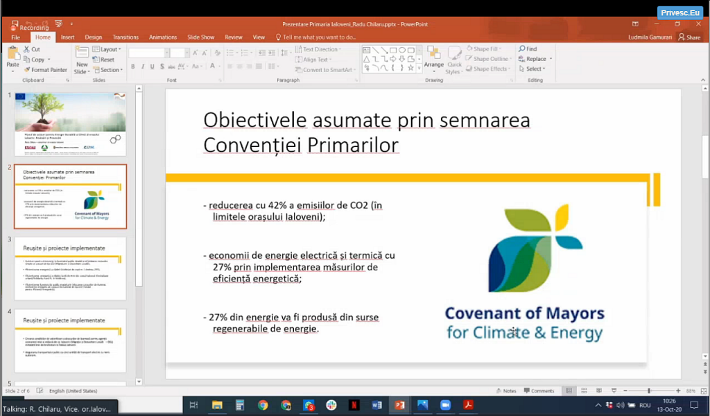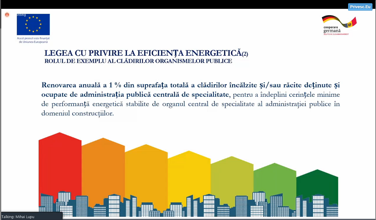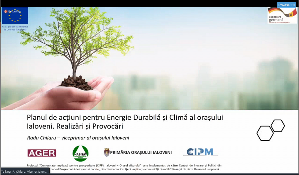 În continuare, domnul Radu Chilaru – viceprimar al orașului Ialoveni – a prezentat realizările administrației locale în vederea eficientizării energetice a clădirilor publice precum și provocările cu care se confruntă în îndeplinirea angajamentelor asumate.