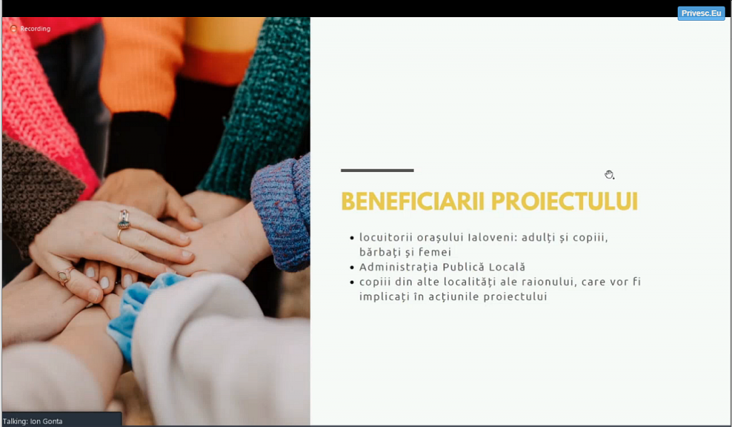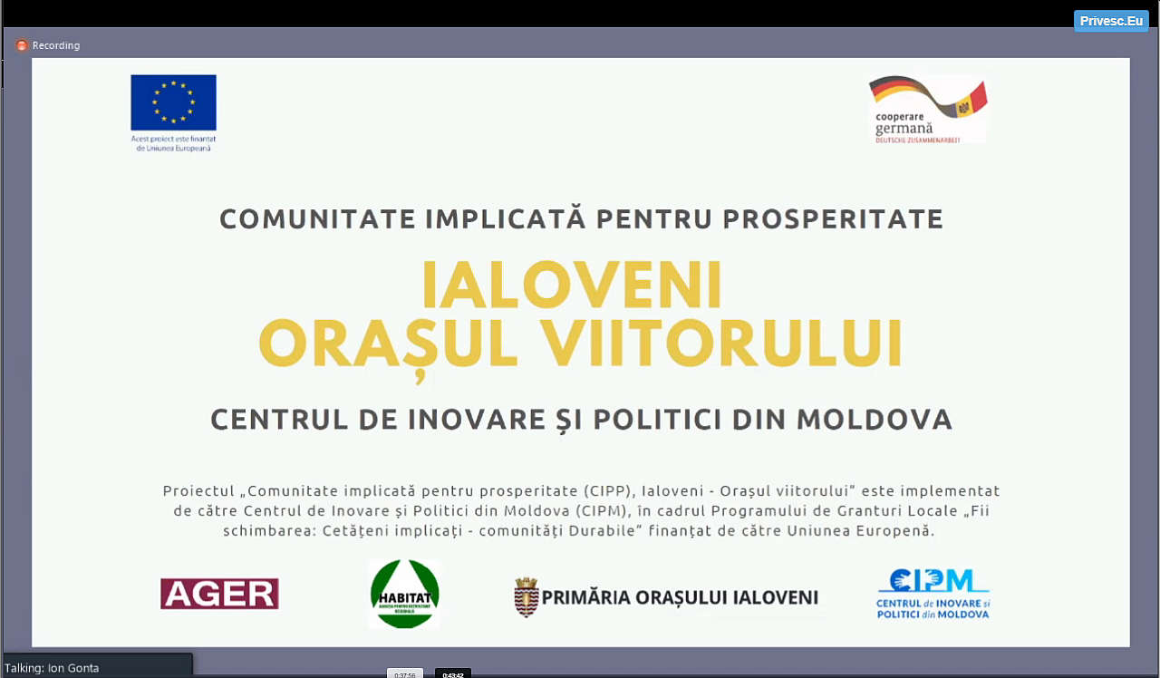 Domnul Ion Gonța – manager de proiect în cadrul Centrului de Inovare și Politici din Moldova – a prezentat proiectul „Comunitate implicată pentru prosperitate (CIPP), Ialoveni – Orașul viitorului” finanțat de Uniunea Europeană.
